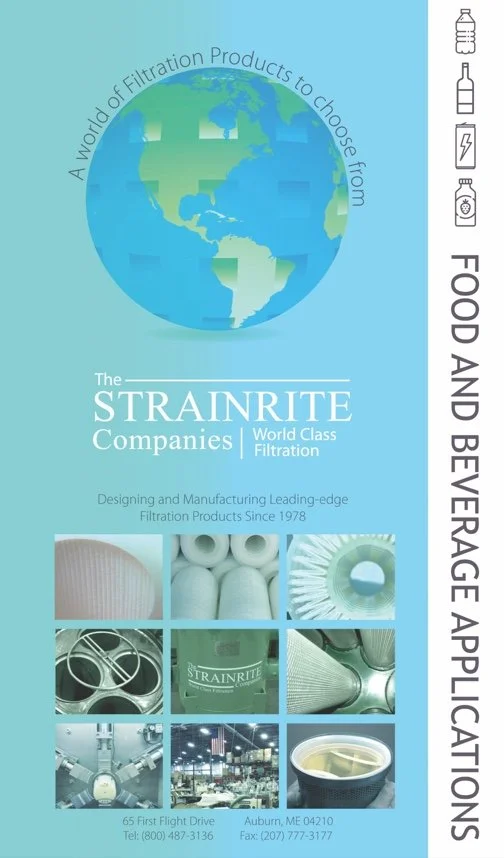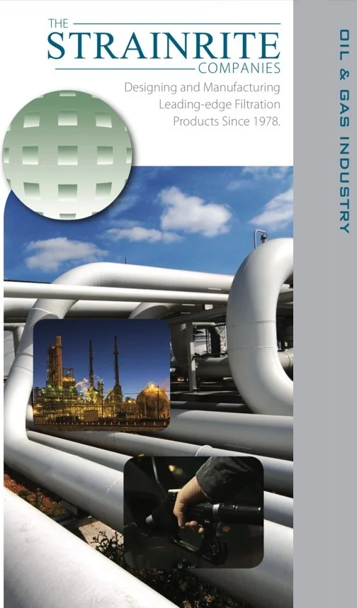 Building on this updated brand foundation, I designed a series of industry-specific tri-fold brochures to highlight Strainrite’s filtration solutions across multiple sectors, including oil and gas, drinking water, food and beverage, CBD and THC processing, pharmaceuticals and biotechnology, inks and coatings, and microelectronics and semiconductor applications. Created using Adobe InDesign and Adobe Photoshop, each brochure was tailored to its target industry while maintaining cohesive visual standards and brand consistency throughout the entire suite of materials.